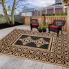 HAUSHOF 5'X8' Outdoor Rug Waterproof with LED Strip Light, Reversible Outdoor Plastic Straw Rug, Patio Rug with 4 Rug Stakes, Outdoor Carpet Mat for RV, Camping, Beach, Porch, Balcony, Black&White