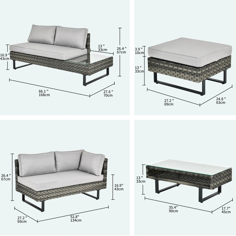 6. Protect cushions from rain. The inner sponge is NOT waterproof. To extend product lifetime, cover sofas when not in use.