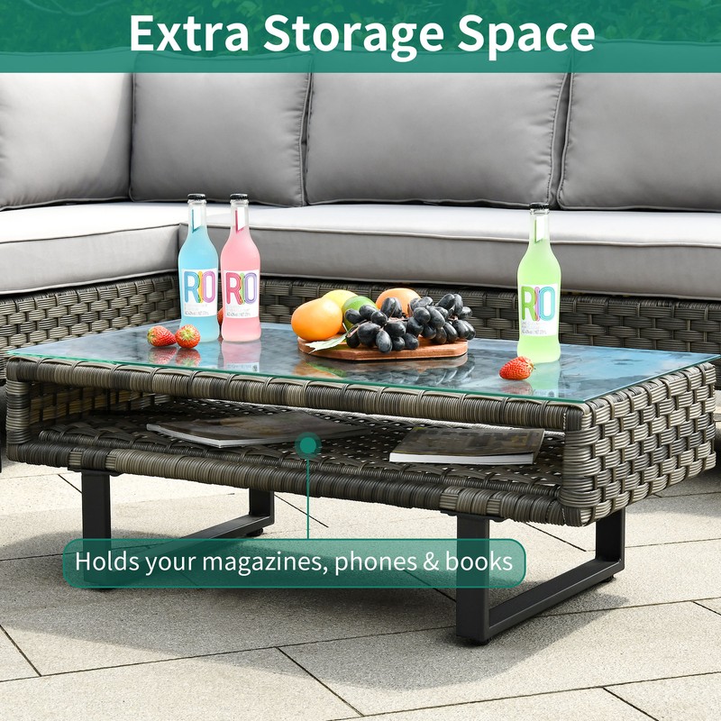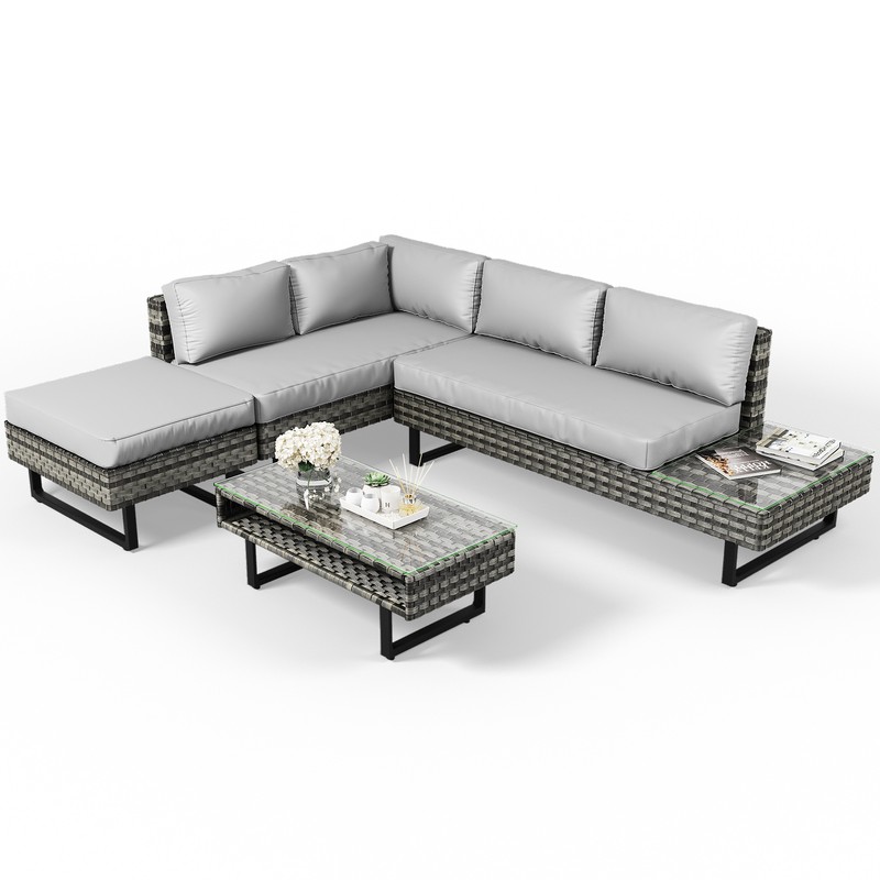 Patio Furniture Sets 4-Pieces Outdoor Sectional Sofa Rattan Wicker Sofa w/ Table